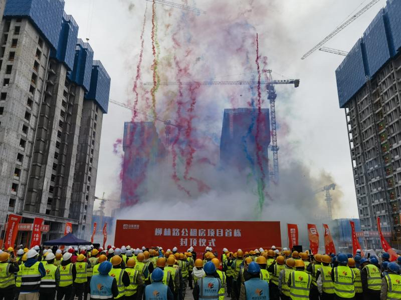 柳林路公租房項目EPC總承包一標段首棟封頂
